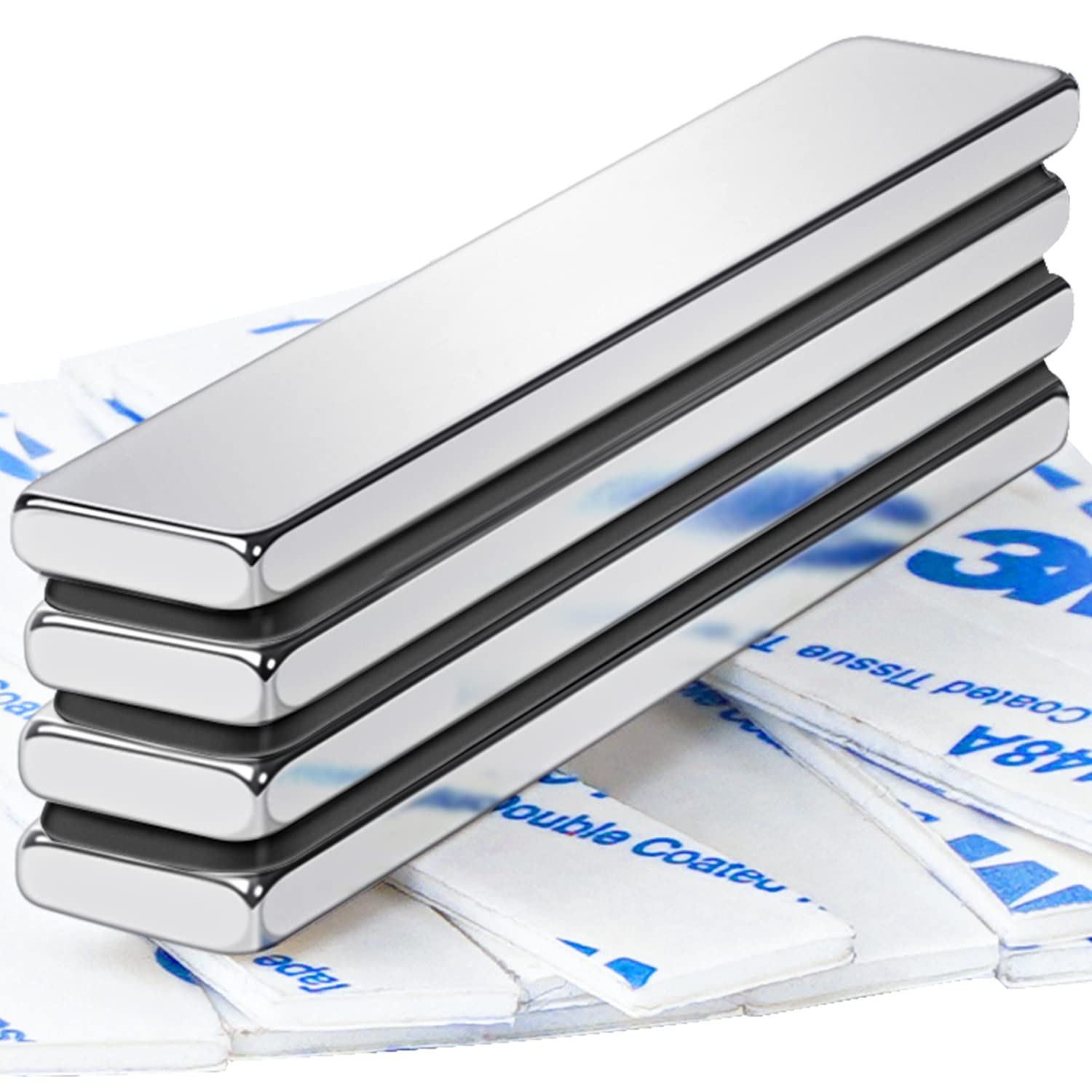 FINDMAG Magnete Stark, 4 Stück 60 x 10 x 3 mm Neodym Magnete Extra Stark, Stabmagneten, Kühlschrankmagnet, Neodym Magnet, Starke Magnete, Seltenerdmagnete mit Doppelseitigem Klebeband - Silber