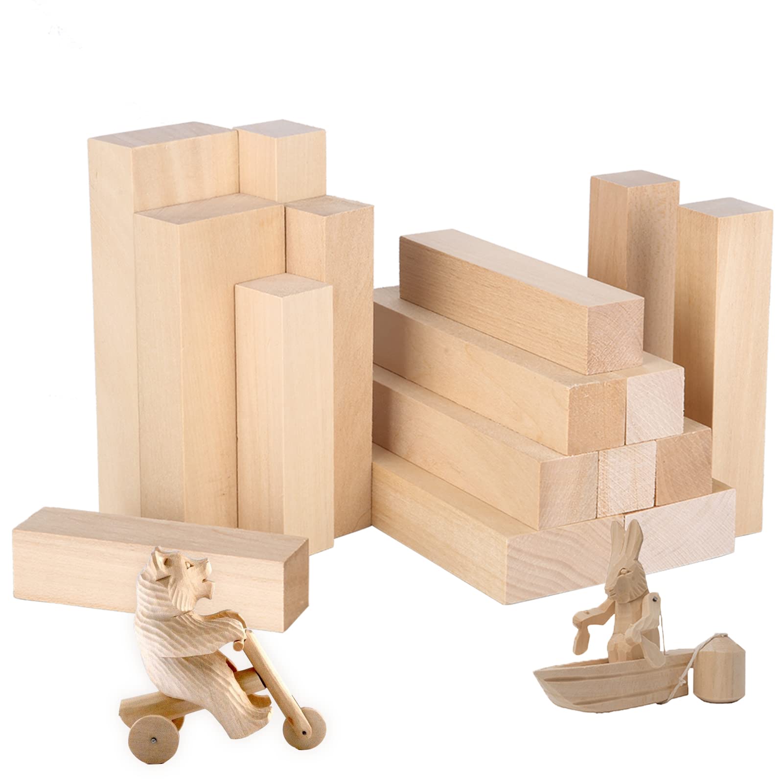 Viesap Linde Carving Blöcke, 16 PCS Natürlich Lindenholz Rohlinge Balsaholz, Handgeschnitztes Holz, DIY Handwerk Kunst Liefert Für Anfänger Kinder Erwachsene Schnitzholz, Natürlicher Massivholzblock