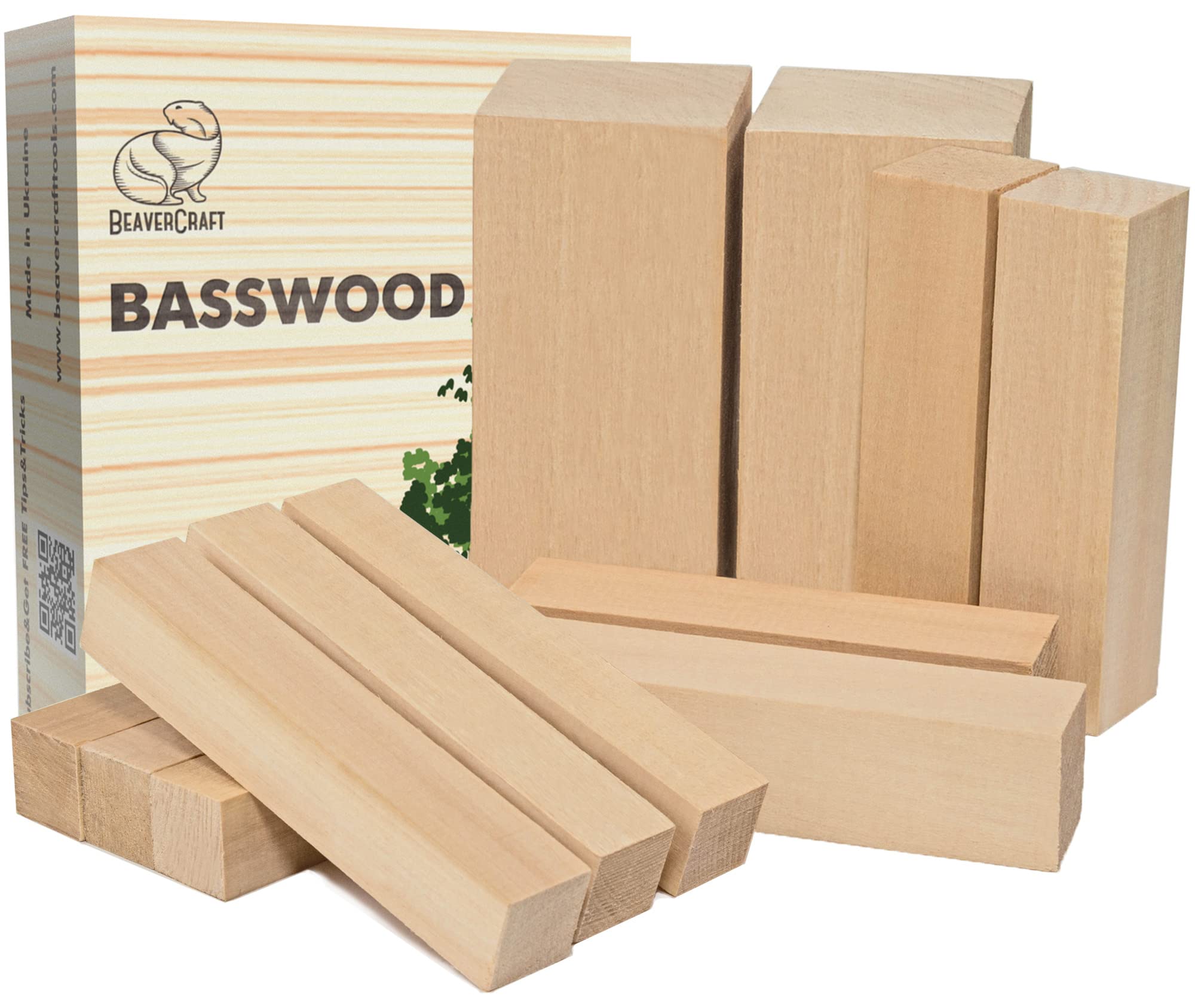 BeaverCraft BW18 Lindenholz-Schnitzblöcke Holzblöcke zum Schnitzen Lindenholz zum Holzschnitzen Schnitz-Kit Holzblöcke zum Schnitzen von Lindenholz Basswood Holzschnitzen-Set Holzschnitzholz