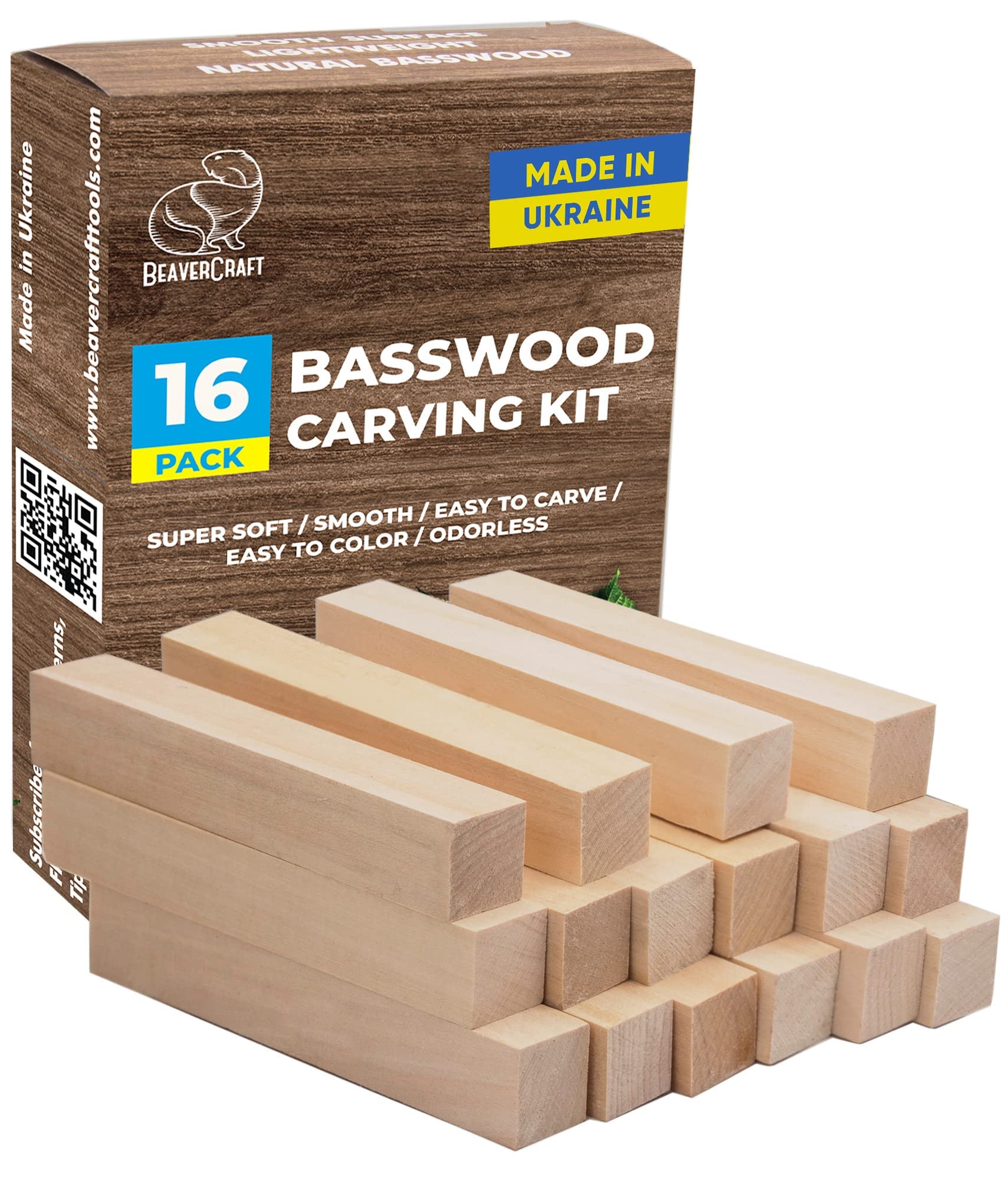 BeaverCraft BW16 Lindenholz-Schnitzblöcke Schnitzholz zum Holzschnitzen Holzblöcke zum Schnitzen Holzschnitzset für Anfänger Lindenholzblöcke Schnitz-Kit Unfertige Holzblöcke