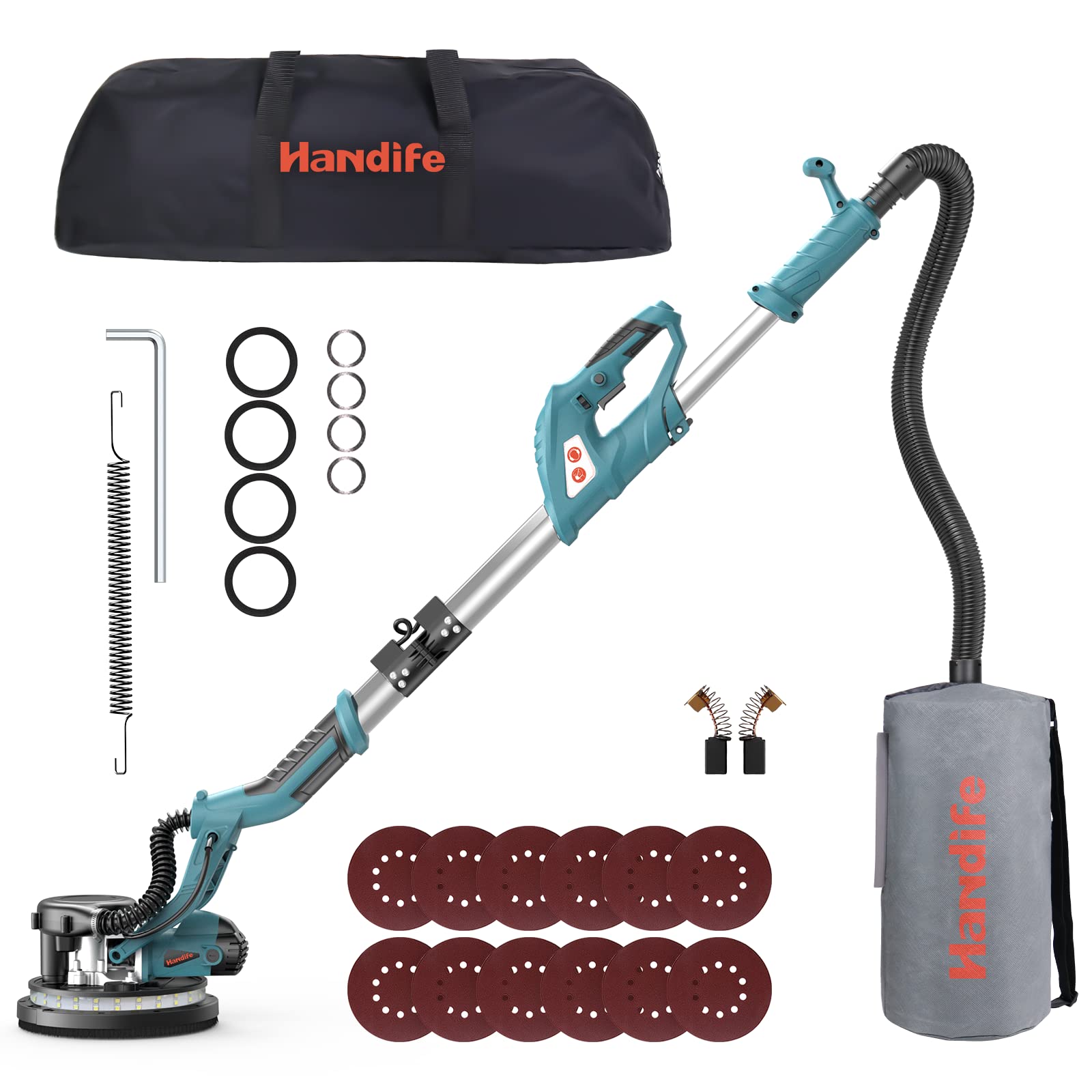 Trockenbauschleifer, Handilife Deckenschleifer 800W, Faltbar &Einziehbar Deckenschleifer mit Selbstreinigungsfunktion, 800-1800 RPM Variable Geschwindigkeit, 12PCS Schleifpapier, LED-Licht, Tragetasche Gefaltet