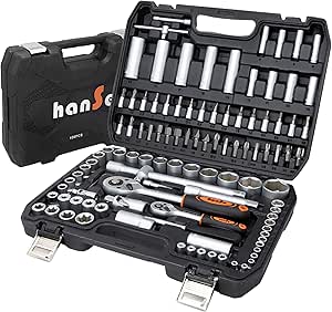 hanSe Steckschlüssel Satz 108 teilig Knarrenkasten Ratschenkasten Werkzeugkoffer zwei Umschaltknarren 1/4" und 1/2" mit Schnellwechselvorrichtung