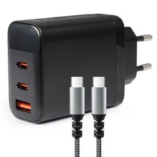 GaN Schnell-Ladegerät 3 Port 2 x USB-C 1 x USB-A 65W LED Display + USB-C Kabel