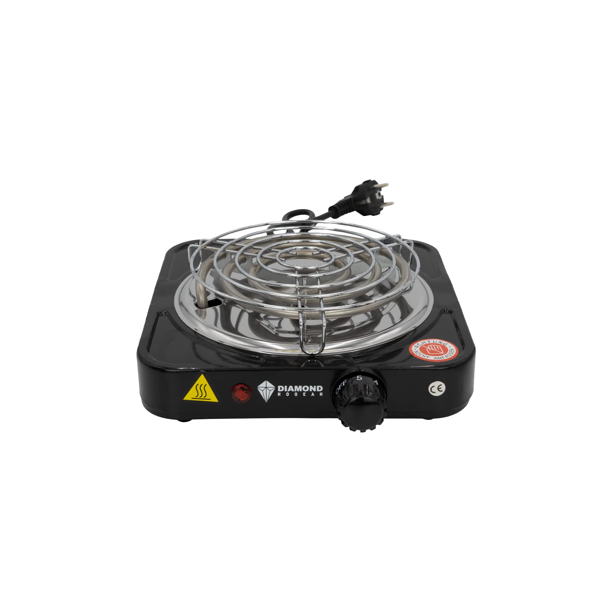 Der tragbare Kohlekorb kommt mit einer Shisha Zange und einem 150cm Kabel Shisha Kohleanzünder. Doch das ist noch nicht alles! Denn dieser Elektrische Kohleanzünder ist auch ideal als kleine Kochplatte oder Herdplatte für unterwegs geeignet und kann somit vielseitig eingesetzt werden. Das hochwertige Accessoire ist aus robustem Metall gefertigt und vollständig EU-Konform. Die Lüftungsschlitze an allen Seiten sorgen für eine effektive Abkühlung. Der Brenner bringt Kokoskohle, Bambuskohle und Grillkohle in nur 5 Minuten zum Glühen. Der rutschfeste Halt wird durch die Gummifüße des Kohlenkorbs gewährleistet, während der Kohleteller mit Rand ein Umkippen der Holzkohle verhindert. Dieses Kohleherd für Shisha Kohle ist das perfekte Geschenk für jeden Shisha-Liebhaber und findet einen festen Platz auf dem Tisch, Balkon oder der Terrasse.