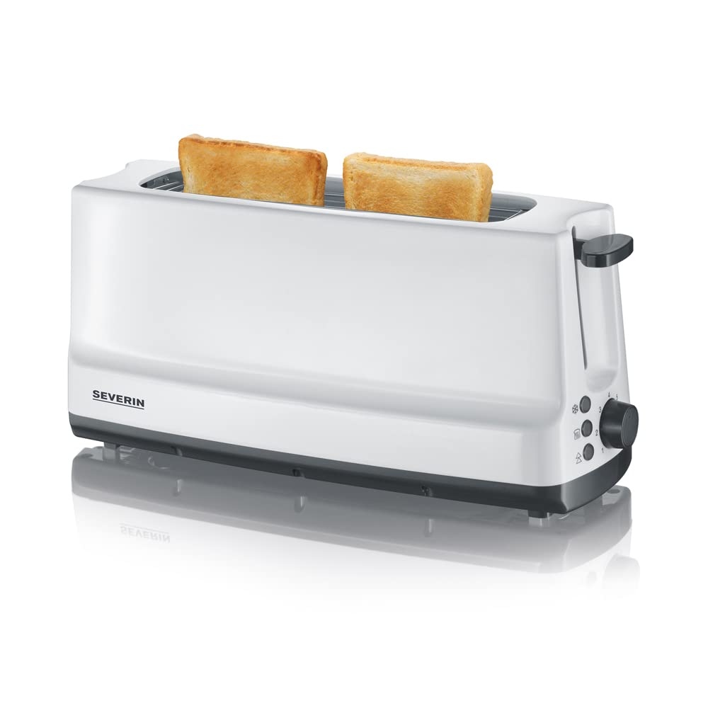 SEVERIN Automatik-Langschlitztoaster, Automatik-Toaster mit Brötchenaufsatz, Edelstahl Toaster zum Toasten, Auftauen und Erwärmen, 800 W, weiß / grau, AT 2232