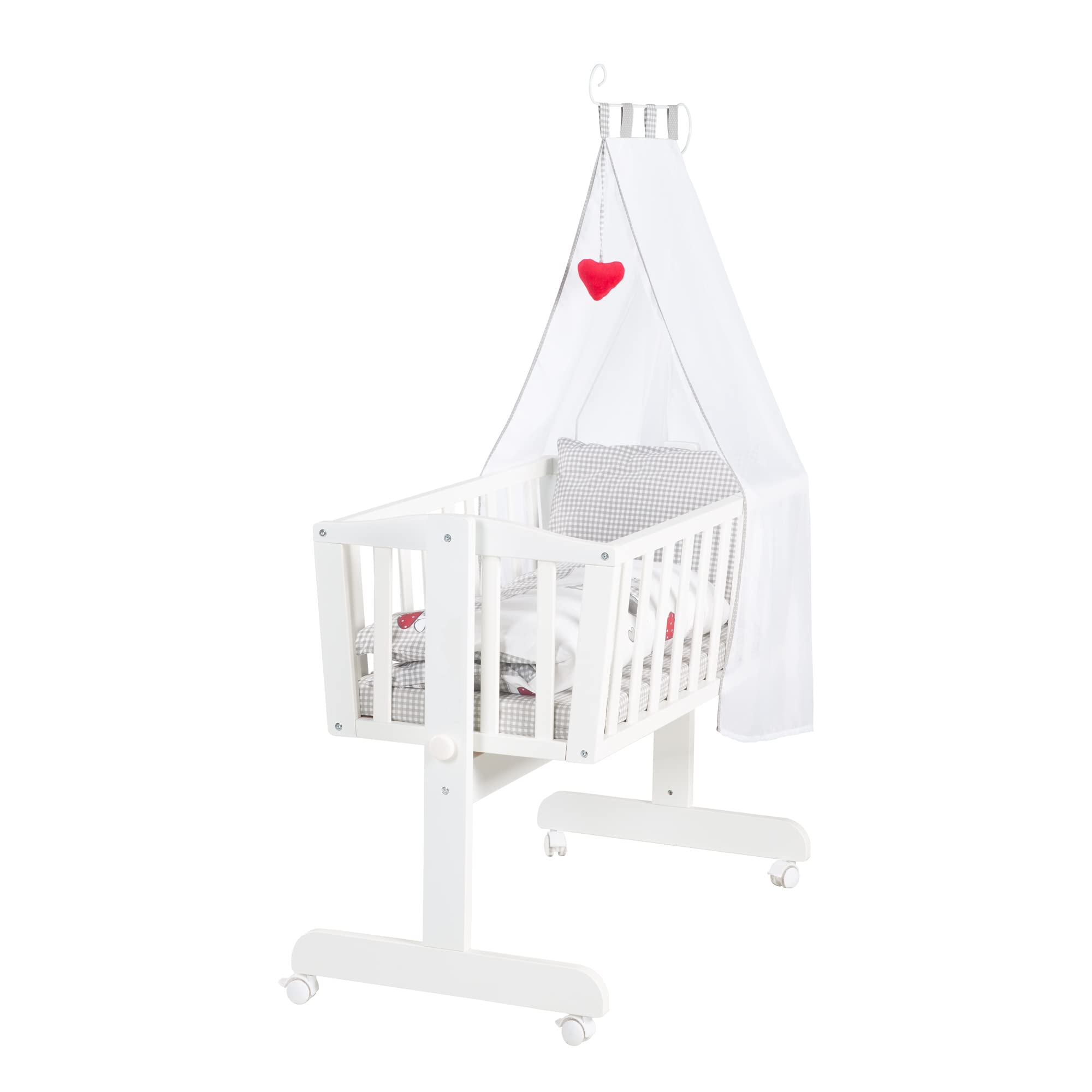 roba Babywiege 40 x 90 cm Adam & Eule - Stubenwagen & Wiege mit Rollen - Bett Set komplett mit Feststellfunktion - Inkl. textiler Ausstattung - Holz weiß Weiß / Adam & Eule