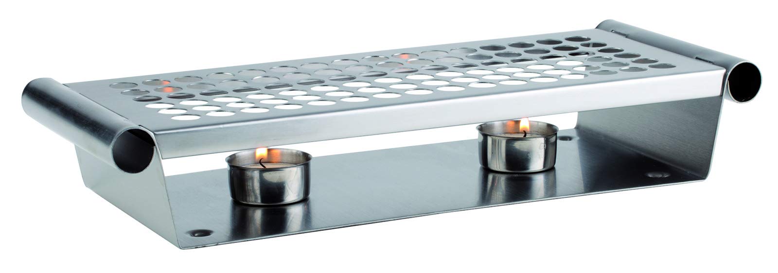 APS Speisenwärmer, Tellerwärmer, Edelstahl Speisen-Warmhalter, 2-flammig, matt poliert, 13,5 x 34,5 cm, Höhe 6,5 cm