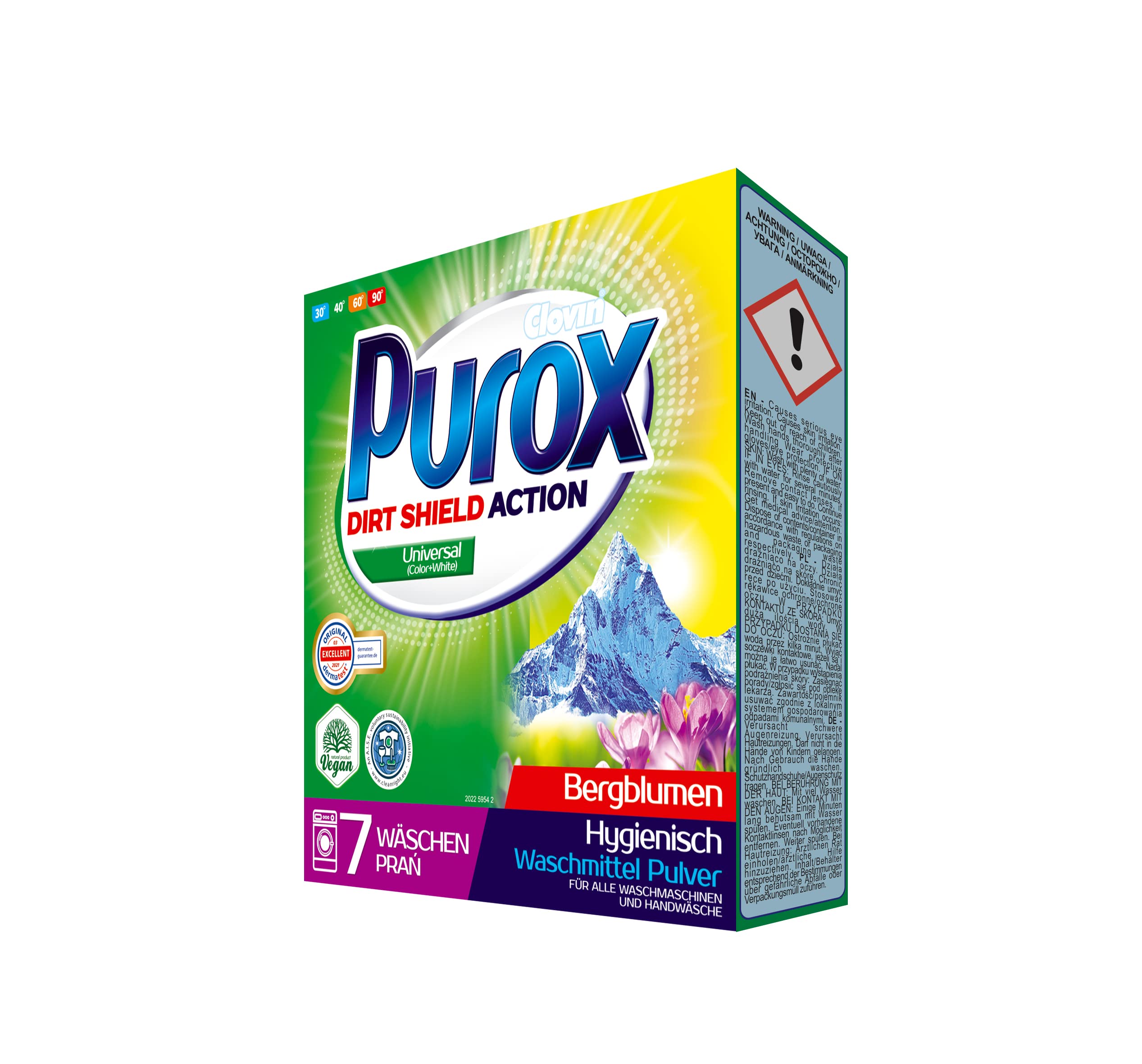 PUROX COLOR&WHITE (6 WL) Waschpulver im Karton Antibakteriell Waschmittel 490 g