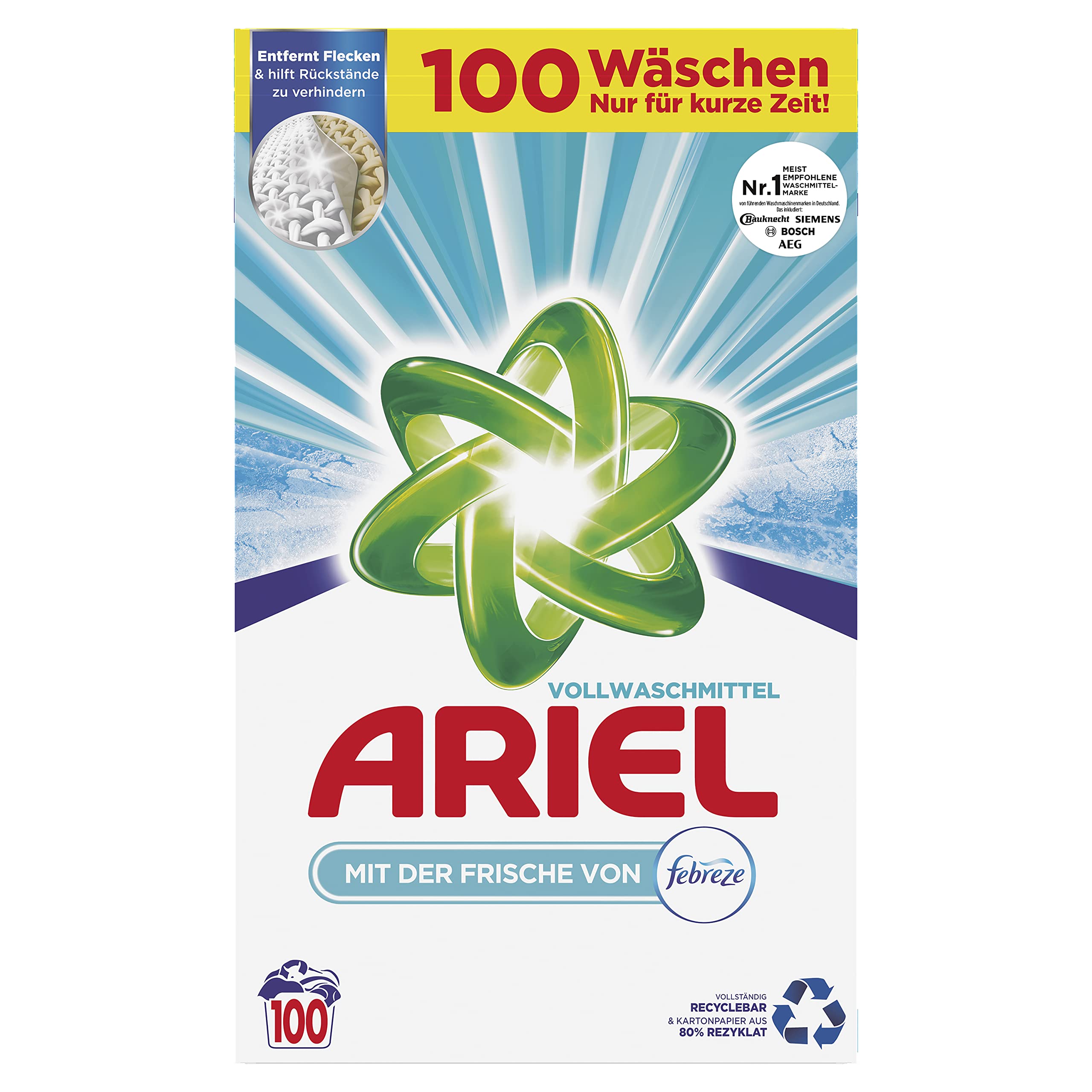 Ariel Waschmittel Pulver, Febreze Frische, 100 Waschladungen, 6.5kg Neu