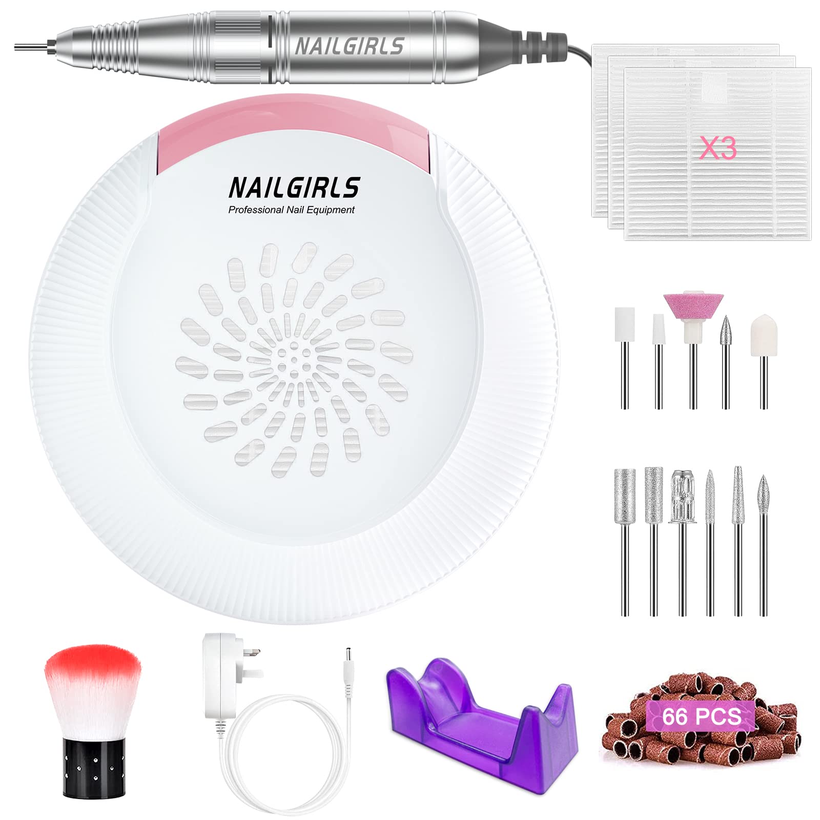 Professionelle Elektrischer Nagelfräser Staubabsaugung für Nägel, NAILGIRLS 2 in 1 Nagelstaubsauger 80W mit Fräser für Gelnägel, Nagelfräser Nagelstaubsauger mit Filter für Nagelstudio, Salon, Nageldesign Weiß