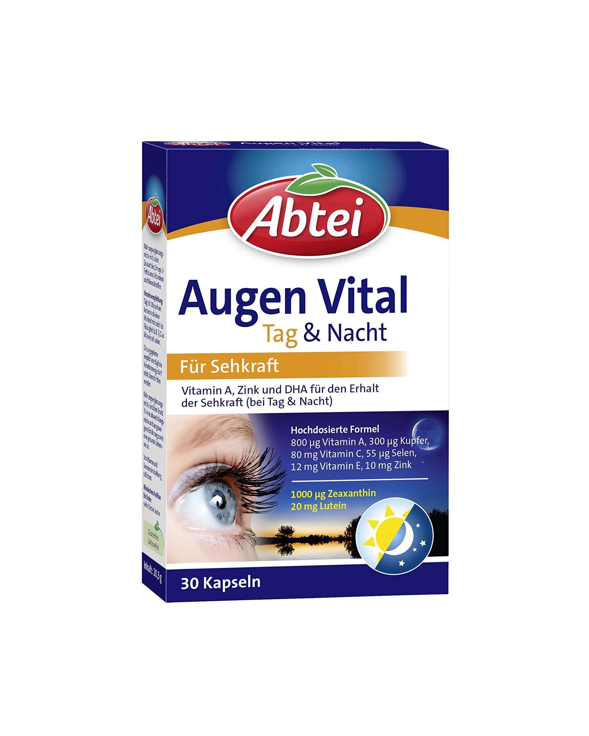Abtei Augen Vital Tag und Nacht - Hochdosiertes Nahrungsergänzungsmittel für den Erhalt der Sehkraft - mit Lutein und Zeaxanthin, Vitamin A, B2, C und E, Zink, Selen, Kupfer und DHA - 1 x 30 Kapseln