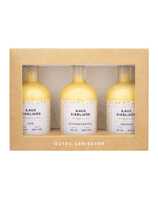 LAUX Eierlikör Geschenkset - Pur, Schokotrüffel & Orange - Premium Likörspezialität - Hochwertige Zutaten - Geschenk zu Muttertag (20% Vol.) (3 x 50ml) Eierlikör Set 3 x 50 ml