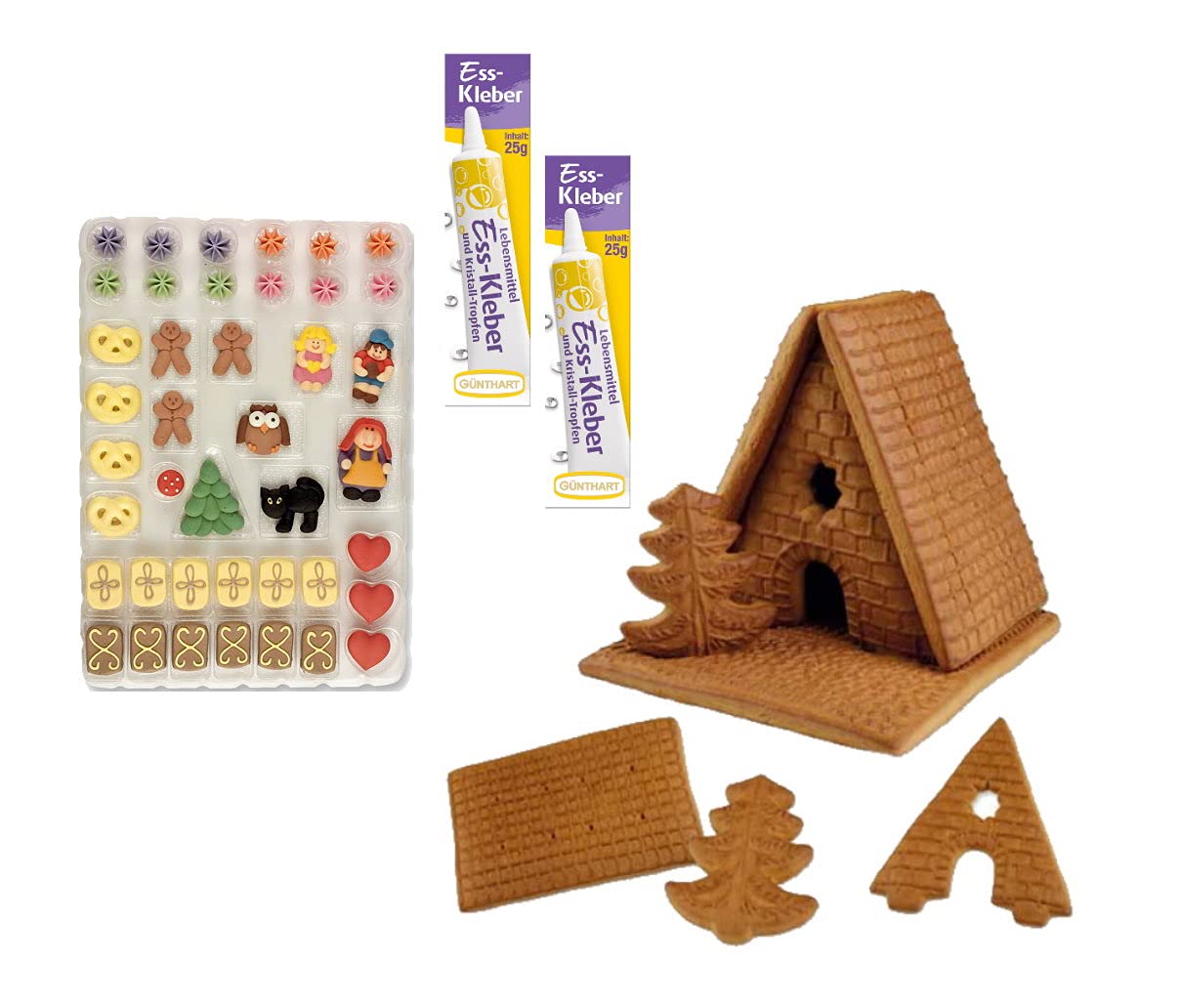 Günthart DIY Lebkuchenhaus - Bausatz Lebkuchenhaus - Hexenhaus - Pfefferkuchenhaus 6tlg - Weihnachtsbäckerei