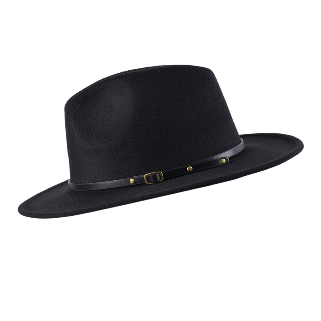 besbomig Damen Herrenhüte Winter Mode Filzhut Winterhut Wintermütze - Fedora Hut mit breiter Krempe Filzhut Outdoorhut 56-58 Schwarz
