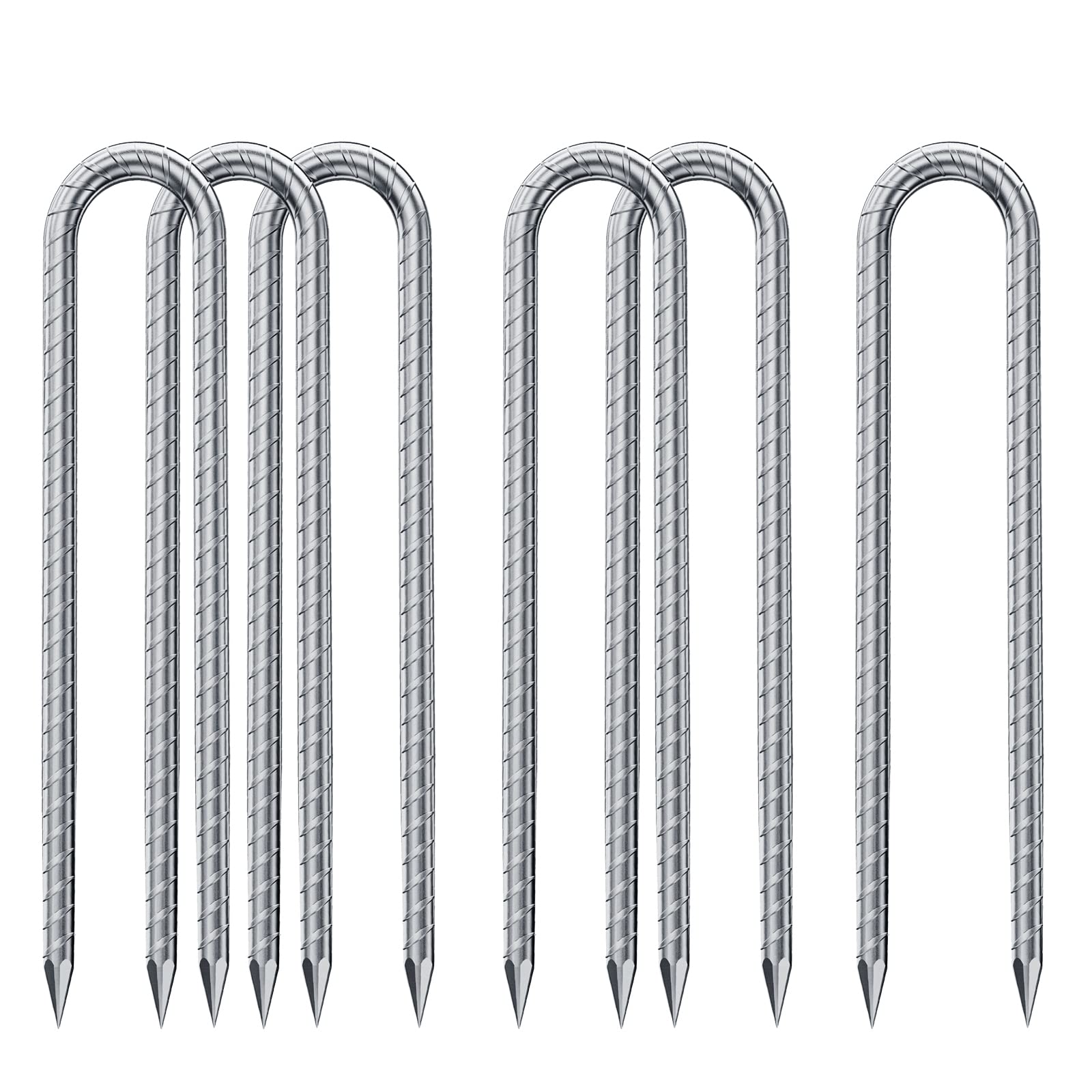 Bodenanker, 6 Stück 30CM U-förmige Bodenpfähle, Verzinkter Stahl bodenanker trampolin, ideal zum erdanker trampolin, Bewehrungsstab Anker, Garten Pfähle, Camping Zelt Heringe