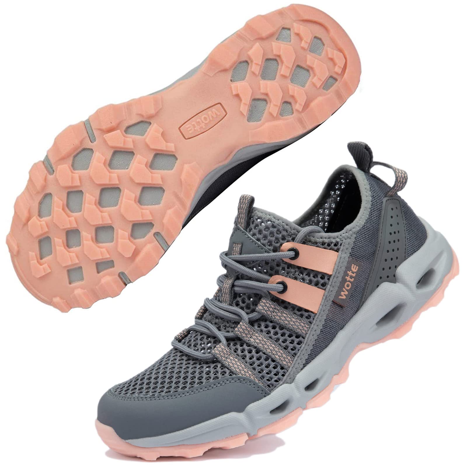 Wanderschuhe Damen Trekkingschuhe Leicht rutschfeste Outdoor-Sportschuhe Atmungsaktive Mesh Sommer Fahrradschuhe Wasserschuhe Größe 36-44 EU 40 EU Grau Orange