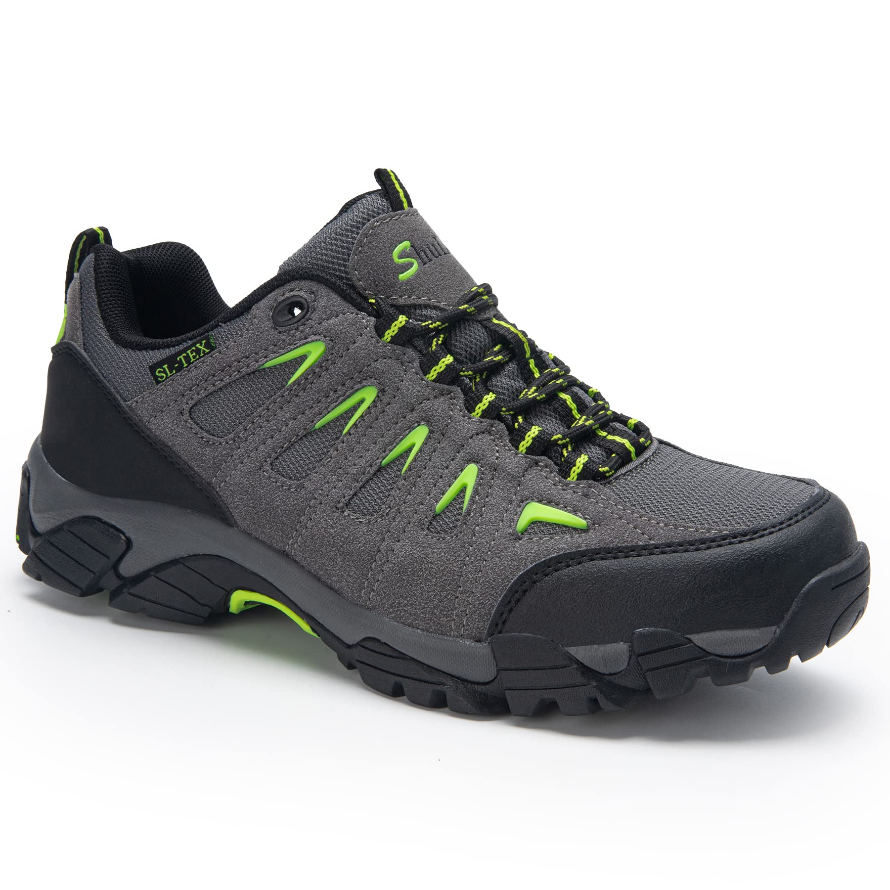 Die SHULOOK Wanderschuhe für Herren sind die perfekte Wahl für passionierte Wanderer, die auf der Suche nach einem vielseitigen und leichten Schuh sind. Der wanderstiefel herren verfügt über ein hautfreundliches D01-Futter mit effizientem Belüftungseffekt, das den ganzen Tag über für angenehmen und trockenen Tragekomfort sorgt. Das Schnürdesign ermöglicht eine verstellbare und sichere Passform, während die geschlossenzellige Zunge das Eindringen von Regen, Matsch und Sand verhindert. Das Antikollisions-Zehendesign aus Gummi bietet Ihnen umfassenden Schutz und Komfort bei Ihren Abenteuern in der freien Natur. Die flexible EVA-Zwischensohle sorgt für hervorragende Dämpfung und hohe Energierückgabe, reduziert die Ermüdung des Fußes und absorbiert Stöße. Mit hochwertigem SL-TEX Wasserfeste Membran verhindert der Outdoor-Schuh das Eindringen von Wasser und verflüchtigt Wasserdampf, um den ganzen Tag für trockene Füße zu sorgen. Sie bestehen aus Wildleder und Mesh und sind in einem trendigen Grau-Grün erhältlich. Wählen Sie SHULOOK für Ihren nächsten Outdoor-Trip!