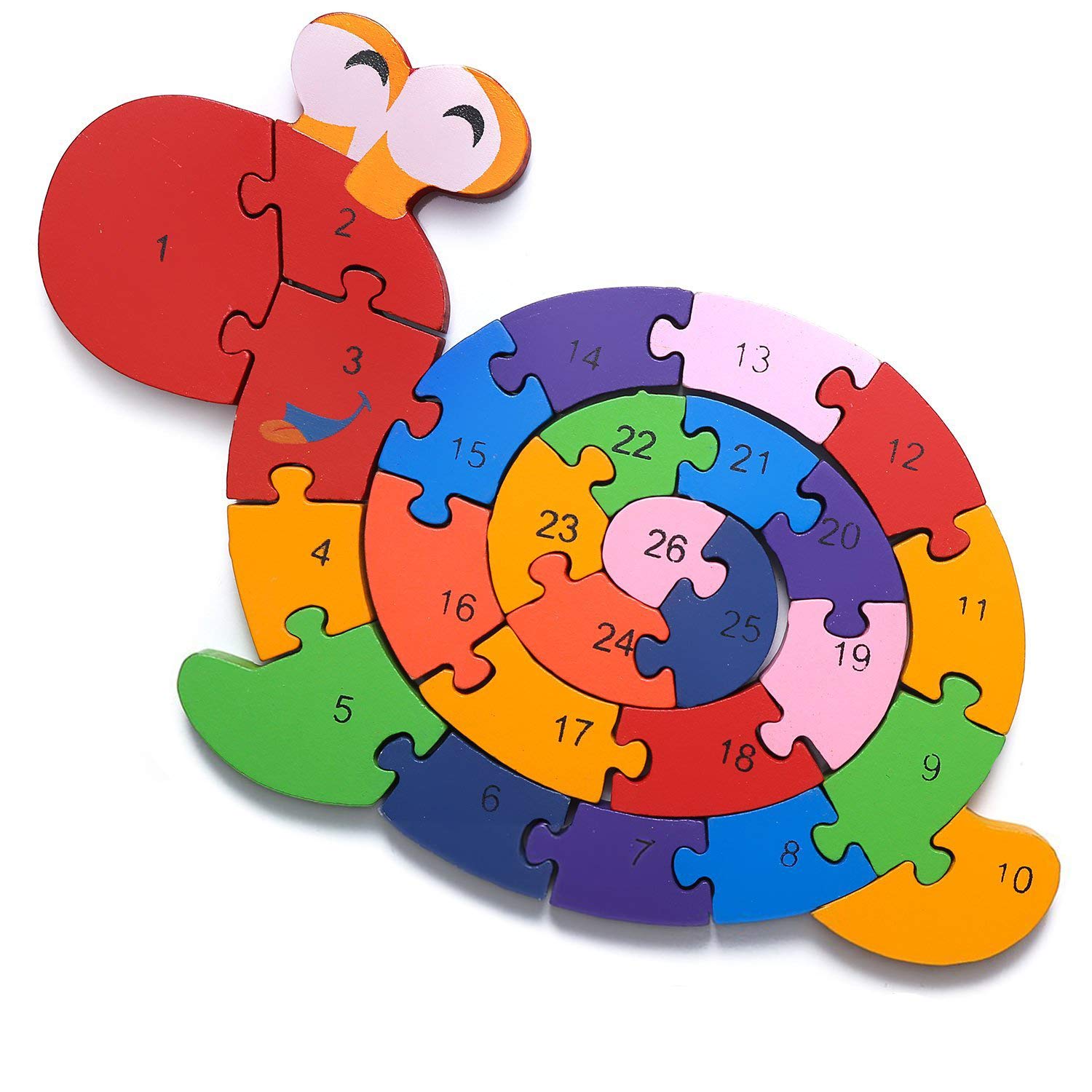 Schnecke Zahlenpuzzle Holzspielzeug - Zahlen und Buchstaben - Pädagogisches Spielzeug für klein-Kinder ab 3 Jahre mit Sicherung