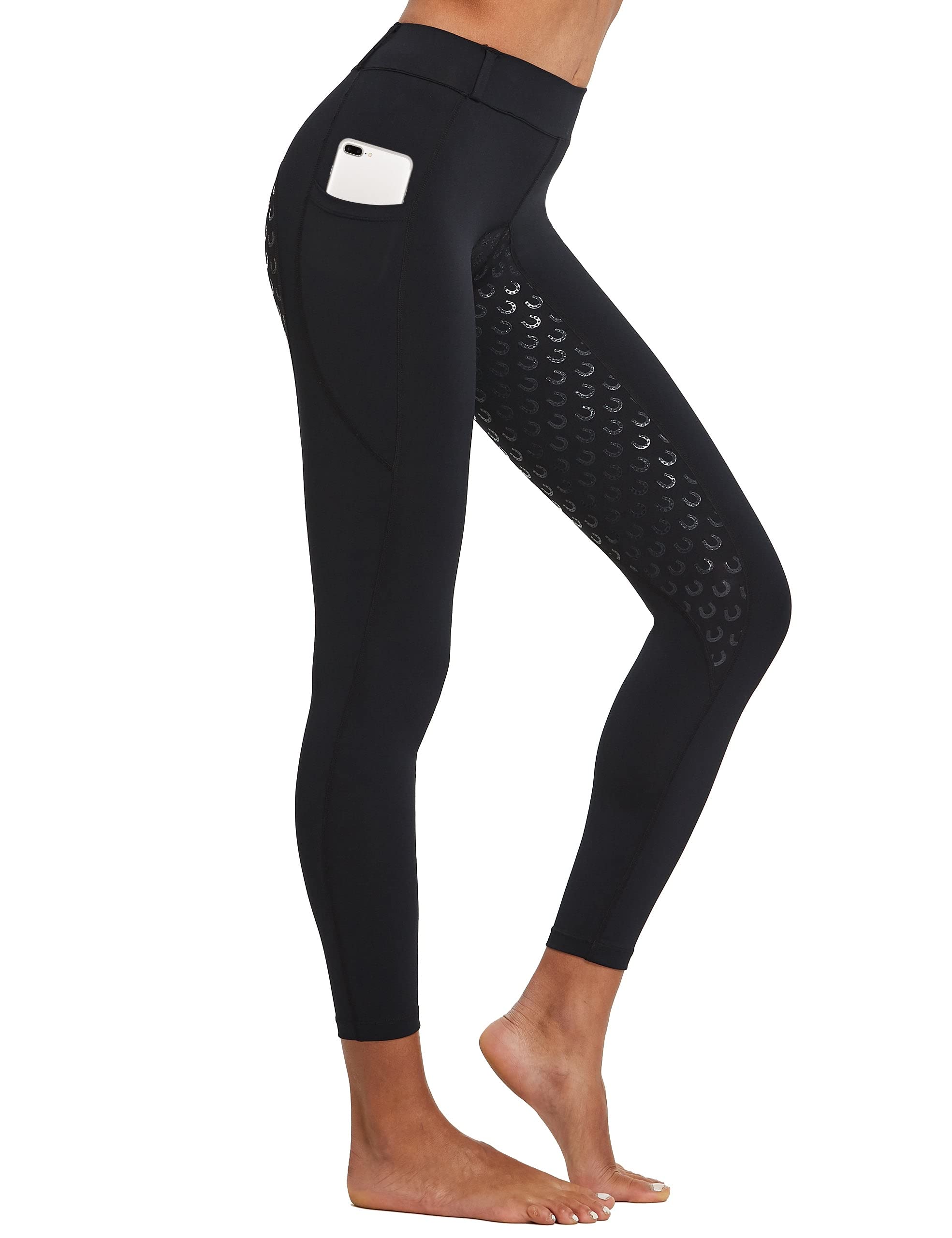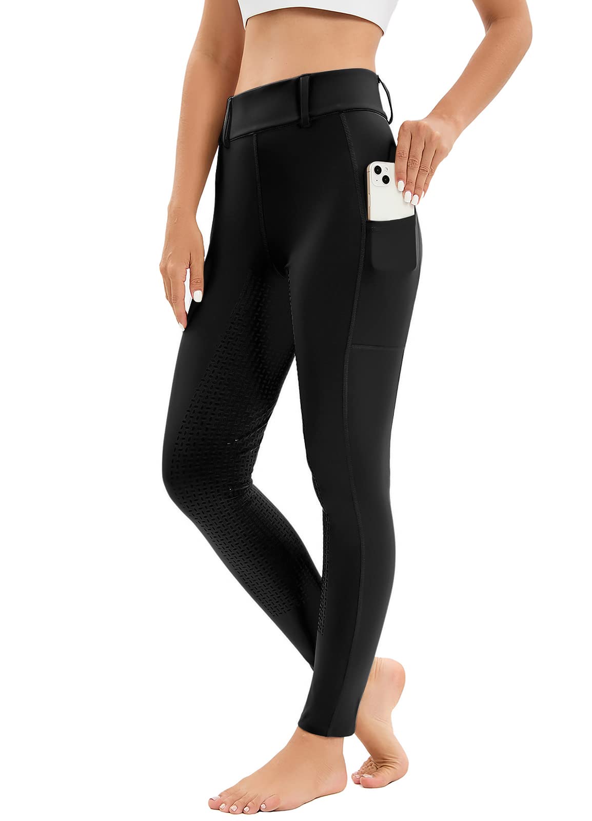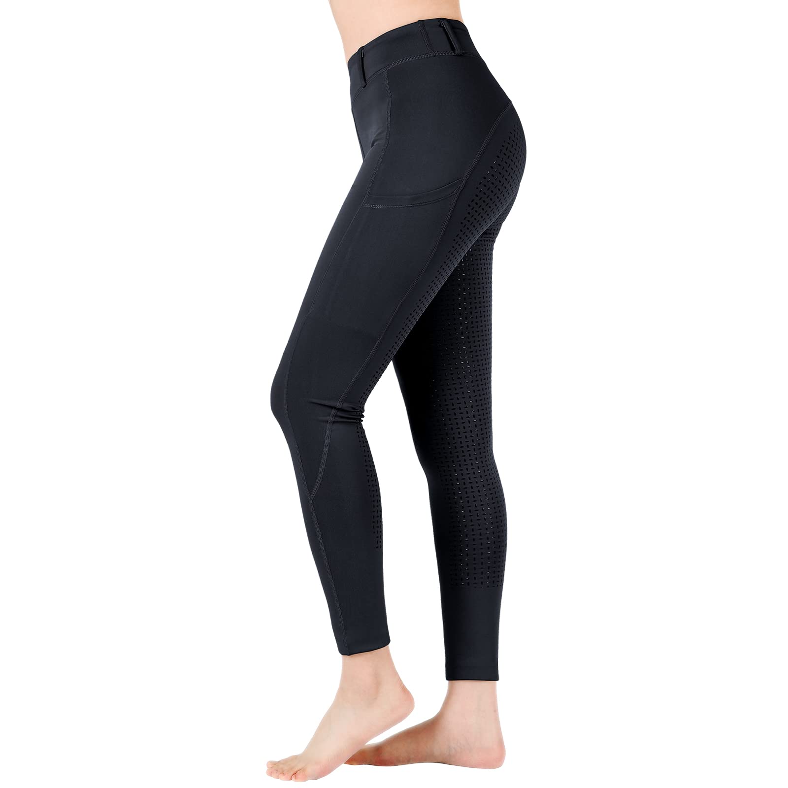 FitsT4 Damen Reitleggings Silikon Vollbesatz Reithose mit Handytasche und Gürtelschlaufen Schwarz S