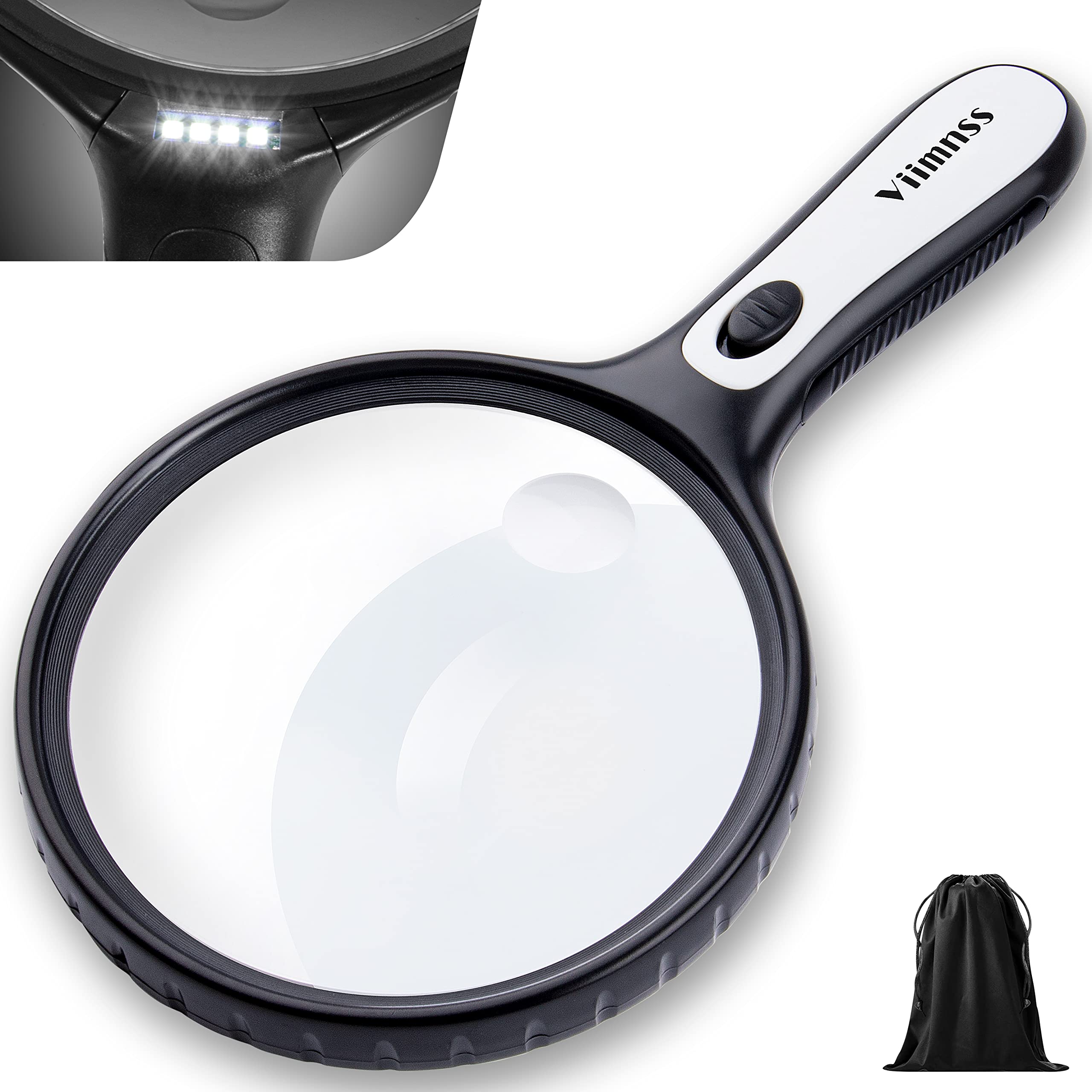 Die fortschrittliche Lupe mit Licht und Ständer mit 18 LED ist ein ideales Geschenk für ältere Menschen, die Schwierigkeiten beim Lesen kleiner Schrift haben. Sie lässt sich leicht auf kleingedruckte Artikel wie Coupons, verschreibungspflichtige Medikamente und mehr anwenden. Mit der 10-fachen 3,2-Zoll-Glaslinse und der 30-fachen 0,82-Zoll-Acryllinse, die in dieser 2-in-1 LED-beleuchteten Lupe integriert sind, können Sie problemlos Münzen, Briefmarken, Puzzle und Hobbys betrachten. Mit ihrem klappbaren und rutschfesten Ständer ist die Lupe äußerst vielseitig und eignet sich auch für Reparatur- und Nadelhandwerk. Die beleuchtete Lupe verfügt über 18 ultrahelle LED-Lichter in 3 Farben (warm, weißwarm und weiß), die eine hellere Beleuchtung und eine bessere Leseerfahrung bieten. Die Lichter sind dimmbar und eignen sich besonders gut für Menschen mit Makuladegeneration oder Weitsichtigkeit. Die Lupe ist leicht zu bedienen und wird komplett montiert geliefert. Sie benötigt nur drei AAA-Batterien (nicht im Lieferumfang enthalten), bevor sie in Betrieb genommen werden kann. Ein kleines Linsentuch wird mitgeliefert, um jederzeit eine klare Sicht gewährleisten zu können. Insgesamt bietet diese Lupe eine leistungsstarke Vergrößerung von 30- bis 10-fach und ist somit perfekt für Menschen mit Sehschwäche jeder Größe. Die Lupe ist eine großartige Wahl für Senioren, Kinder, Lesen, Inspektion und Hobbys.