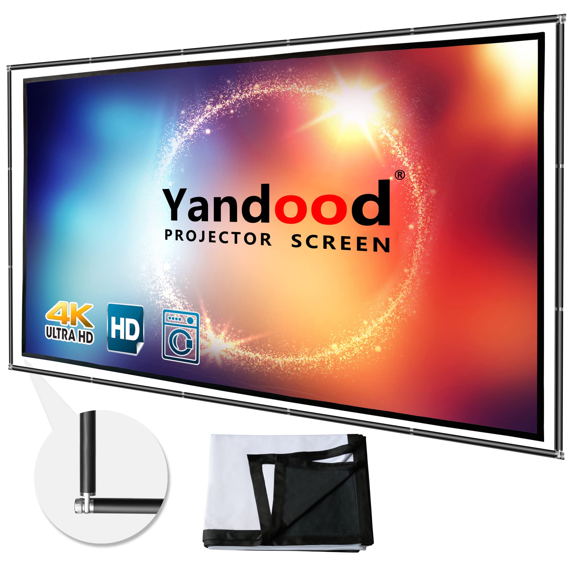 Faltbare Projektor-Leinwand 120 Zoll mit kombiniertem Polrahmen 16:9 HD 4K Anti-Knitter-Schwarze Rückseite Silber tragbare Projektionsleinwand 2022 Version 120 inch