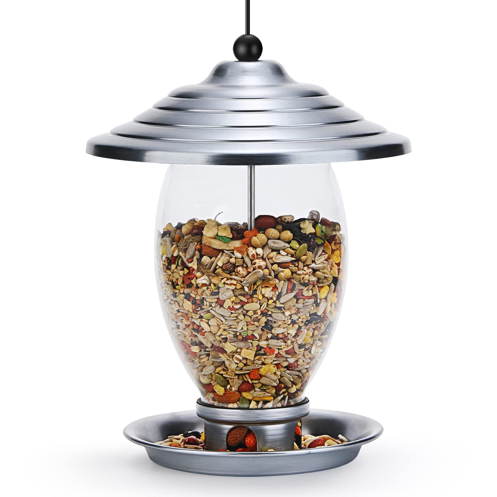 Vogelfutterhaus - CHICHILL Vogelfutterspender zum Aufhängen aus Metall und Glas - Bird Feeder Wetterfest und Rostfrei - Futterstation Vögel Vogelfutterstation Wildvögel - Silber