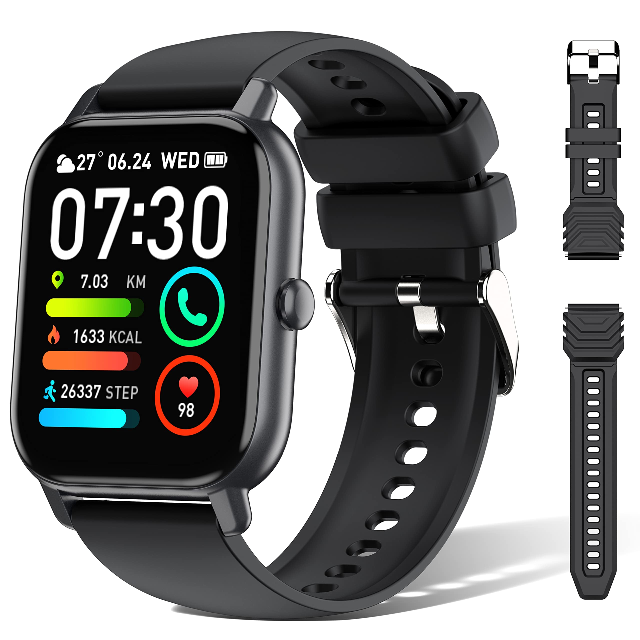 Mit der Smartwatch Herren 2023 Fitnessuhr treffen Sie die perfekte Wahl für einen gesunden, sportlichen und vernetzten Lebensstil. Diese multifunktionale Uhr ist mit zahlreichen nützlichen Funktionen ausgestattet und verfügt über eine Telefonfunktion, mit der Sie Anrufe entgegennehmen oder tätigen können, ohne Ihr Smartphone aus der Tasche zu nehmen. Egal ob Sie Laufen, Radfahren, Yoga oder andere Sportarten betreiben, die fitness tracker bietet Ihnen über 100 Sportmodi, um Ihre sportlichen Bedürfnisse zu erfüllen. Die Smartwatch ist IP68 wasserdicht und kann problemlos im Regen oder beim Schwitzen getragen werden. Das hochauflösende 1,85-Zoll-Display ermöglicht eine hervorragende Bildqualität und flüssige Bilder. Außerdem stellt die smartwatch große Funktionen zur Verfügung, um den ganzen Tag über Ihre Gesundheit und Fitness, Herzfrequenz, Schlafverfolgung und Blutsauerstoffmessung zu messen. Mit der "GloryFit"-Anwendung erhalten Sie mehr als 100 verschiedene Zifferblätter, um Ihren persönlichen Stil widerzuspiegeln. Die fitness uhr ist kompatibel mit Smartphones, die iOS 9.0 oder Android 5.0 oder höher verwenden. Das gewebte Nylonarmband passt sich perfekt an Ihr Handgelenk an und sorgt für einen bequemen Tragekomfort. Mit der Bluetooth-Verbindung können Sie auch andere Benachrichtigungen von Sozialmedien erhalten und wichtige Anrufe empfangen. Diese Smartwatch ist ein nützliches Geschenk für Sie selbst, Familie oder Freunde, die einen gesunden und aktiven Lebensstil pflegen möchten. Wählen Sie die Smartwatch Herren mit Telefonfunktion noch heute!